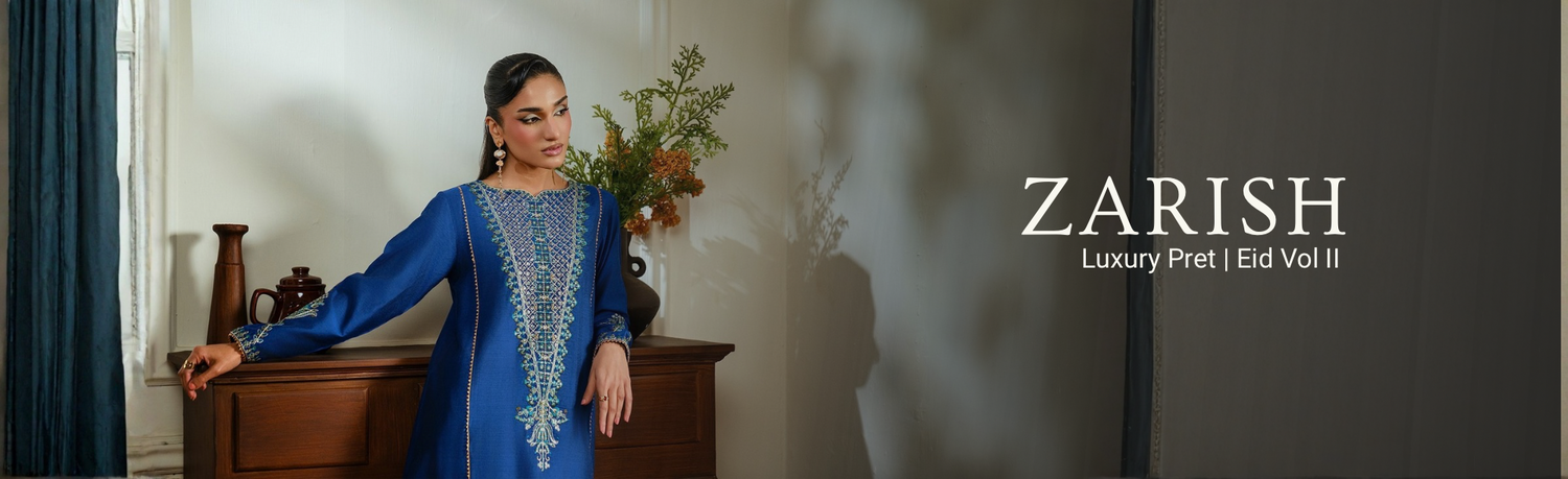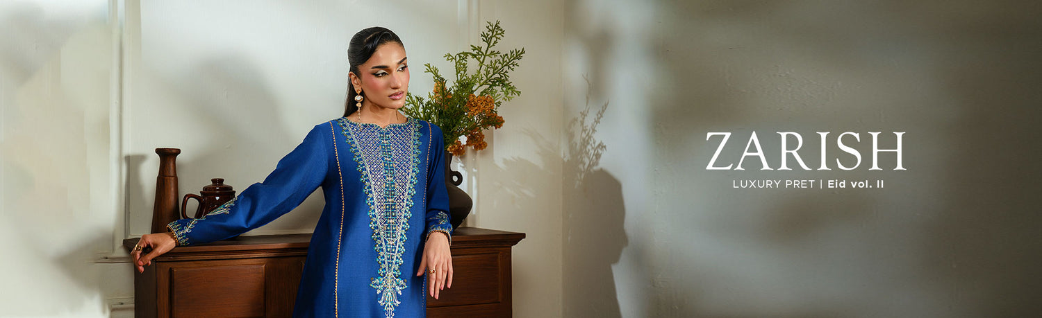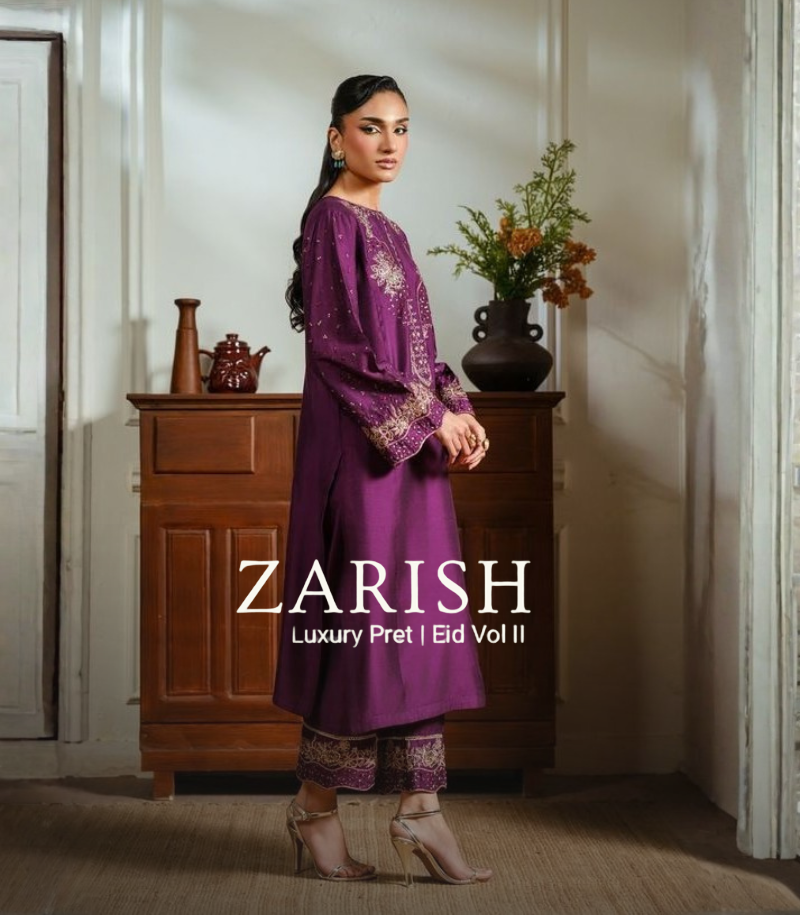 Zarish Eid Vol. II is a luxury Eid collection made from premium viscose with fine yarn-dyed details. With soft embroidery, clean cuts, and beautiful colors, each design is comfortable, elegant, and perfect for celebrating Eid with ease and grace.